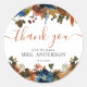 Floral Navy Blue Brown Bridal Shower Thank You Classic Round Sticker
