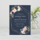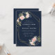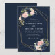 A Navy blue and blush Floral design with a gold geometric frame with text in the middle.