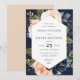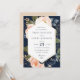 A beautiful watercolor navy blue and pink blush floral frame with elegant text and a lovely formal Navy background .