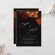 Colorful painted flowers and bride and groom names in an elegant classic calligraphic script on a black background wedding invitation.