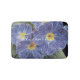 Floral non slip bath mat with blue flower photo. Classy bathroom rug. Chic home decor accesory. Wellness Nature theme photograph. Stylish typography for personalised name, monogrammed initial letters, quote etc. Pretty interior decoration for your house. Available in small, medium and large big size. Customisable background colour. Also nice for spa or beauty salon.