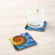 Floral Orange Yellow Blue Abstract Art Coaster