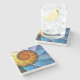 Floral Orange Yellow Blue Abstract Art Stone Coaster