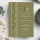 Chic Ornate Floral Olive Green Gold Islamic Muslim Wedding Invitation
