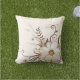 This outdoor accent throw pillow is shown with a lovely floral print design on a natural colour background.