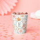 "This beautifully designed paper cup features soft floral pastels, creating a serene and elegant look. Personalised with a custom initial, it's perfect for adding a personal touch to any occasion. Ideal for parties, weddings, or casual gatherings, this charming cup combines functionality with style, making every sip a special experience."