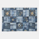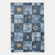 A seamless denim patchwork pattern kitchen towel featuring floral details and textured plaid squares. The mix of denim blues, delicate blossoms, and stitched textures creates a cosy boho aesthetic.