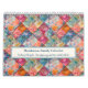 Sewing themed wall calendar featuring 12 months of patchwork quilt designs in vibrant coloured floral patterns. Front cover design is personalised with your name and captioned "Our lives are like quilts – bits and pieces, joy and sorrow, stitched with love", which can be edited with your own text.