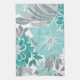 Floral Pattern, Aqua, Teal, Turquoise and Grey Tea Towel