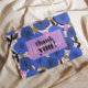 Big blue flower pattern on the front with "thank you" text over a transparent "ribbon" for a layered appearance. This message can be changed if desired. Add your own message and signature on reverse. Modern flat cards have rounded or square corners and can be used for any occasion.