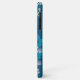 A vibrant phone case adorned with a floral pattern featuring large teal and blue flowers, with delicate pink accents.