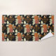 Floral Pattern Foliage Roses on Black Background Bath Towel Set