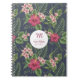 Beautiful floral pattern of Ibiscus on dark background. Sophisticated and feminine spiral notebook with monogram and full name into a round white shape. You can easily change text (font, colour, size and position) by clicking the customise button. Don't forget the whole collection of vintage floral patterns.