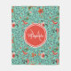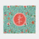 Floral Pattern in Teal and Orange and Red Monogram Fleece Blanket