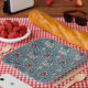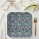 Floral pattern on green leaves blue background paper plate