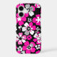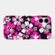 Striking Pink, Gray, and White flowers on a black background, floral patterned iPhone case.