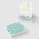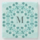 Floral Pattern, Teal Blue Initial Stone Coaster