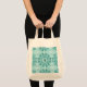 Floral Pattern, Teal Blue Initial Tote Bag
