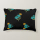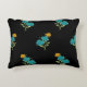 Floral Pattern Turquoise Coral Green on Black Decorative Cushion
