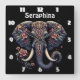 An ornate elephant head showcases intricate floral patterns, displaying a mesmerising blend of colours and designs. The artistic representation captures the beauty and grace of this majestic creature.