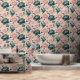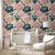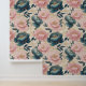 Floral Peonies Blue Pink Gold on Cream Wallpaper