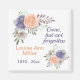 An beautiful Memorial magnet comprising of white background with pale pink and purple floral watercolor Peony roses with the quote " Gone, but not forgotten". Makes a lovely celebration of life keepsake. Personalise with a name and date and change the quote if required.