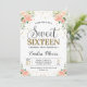 Floral Peony Peach Sweet Sixteen 16 Girl Birthday Invitation