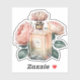 Design features a decorative bottle of pink perfume, embellished with pink roses and green leaves.