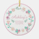 Floral Personalised Ornament For Girl's Room. Can be used as a door hanger ornament or anywhere in the room where it can nicely adorn the nursery. Sweet floral wreath with birdies and butterflies, pastel colours (dusty purple, aqua and peach) that match almost all colours used for girl's nursery and room. Great personalised gift for a baby girl.