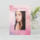A modern and beautiful design with muted floral and leaf images blended in hues of pink and mauve. The featured cross in the back can be eliminated making this a versatile invitation. (FP)
