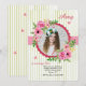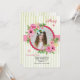 This beautiful, watercolor, round, photo frame with clusters of pink flowers and foliage is backed with a green and white stripe pattern. Perfect for a girl of any age. (<a href='http://www.freepik.com/free-vector/pretty-background-with-watercolor-flowers-for-mother-s-day_1102231.htm'>Designed by Freepik</a>). <br/><br/>The card is easy to customise with your wording, font, font colour, paper shape options and choice of six paper types.<br/><br/>Not exactly what you're looking for? All our products can be custom designed to meet your needs at no extra charge.<br/><br/>Simply contact us at askcottonlamb@gmail.com.<br/><br/>Coordinating products available: Just ask us!