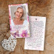 This memorial poem card can be given as a keepsake at a Celebration of Life or funeral service or sent as a special tribute to those who were unable to attend. This card can be personalized with a favorite photo and your choice of prayer or poem. Please note: the person depicted is used only for illustrative purposes please replace the photograph before ordering.