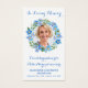 Modern Floral Sympathy Funeral Prayer Cards. This simple yet elegant memorial prayer card features a modern forget me not flower design . Front "In Loving Memory" Personalise this memorial funeral prayer card with your loved ones photo, name & dates, and sentiment. Back ~ 'Miss Me' Poem, which can be personalised, please reach out if you would like a design with a specific poem other than. This memorial prayer card will be a treasured keepsake, for funeral services, and celebration of life. COPYRIGHT © 2020 Judy Burrows, Black Dog Art - All Rights Reserved. Floral Photo Memorial Prayer Card Modern Funeral