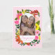 Celebrate Mom with a heartfelt and personal touch with this beautiful personalized Mother’s Day photo card. The design features a cheerful hand-drawn floral wreath filled with vibrant flowers in pink, red, yellow, and green, surrounding a special photo of your choice. The soft pink background and playful botanical illustrations create a warm, joyful look that perfectly captures the love and appreciation we feel for mothers.