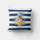 Floral Pineapple Tropical,Navy Blue Striped Cushion