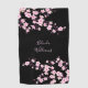 Pink cherry blossoms on a black background. For women who love flowers and floral Asian designs. Customise it with your name.