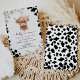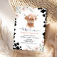 Sweet holy cow or highland cow birthday invitation featuring a cute baby highland, pink bow, black cow print and pink and white wildflowers. This holy cow invitation also features a heart calligraphy text and can be used for any age.