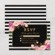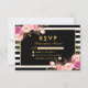 Watercolor Floral Pink Blush Gold and Black Striped Wedding RSVP Card - Gold Frame