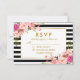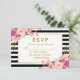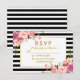 Floral Pink Blush Gold Black Stripes RSVP Wedding Card