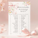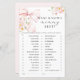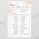 Floral pink bow "Who knows mummy best" baby shower game for a memorable party.