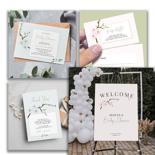 Delicate cute pink flowers spring summer pink baby girl shower invitation with sage green typography and foliage.