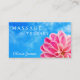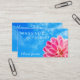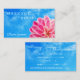 A beautiful and tranquil business card. On a cloudy blue sky background, with a feminine pretty pink dahlia flower, the business card reads Massage Therapy, or a profession of your choice, followed by your name in elegant handwriting. Personalise by adding your contact and business details to the back.