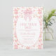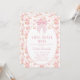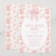 Sweet pink bow and tiny pink floral pattern love shack baby themed baby shower invitation for baby girl also featuring an oval white frame with a pink border.