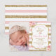 Floral Pink Gold Baby Girl Birth Photo Announcement