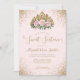Floral Pink Gold Glitter Tiara Sweet 16 Birthday Invitation