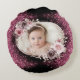 Floral Pink Gold Two Photo Baby Girl cute Round Cushion
