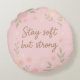 Floral Pink Inspirational Quote – Stay Soft Round Cushion