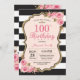 Floral Pink Peonies 100th Birthday Party Invitation for women. Gold Glitter. Blush Watercolor Floral Flower Chic. Black and White Stripes. 13th 15th 16th 18th 20th 21st 30th 40th 50th 60th 70th 80th 90th 100th, Any Ages. Printable Digital. For further customisation, please click the "Customise it" button and use our design tool to modify this template.