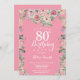 Floral Pink Peonies 80th Birthday Invitation