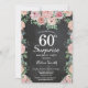 Floral Pink Peonies Surprise 60th Birthday Invitation for Women. Watercolor Floral Flower. Elegant Pink Rose and Peony Flowers. Adult Birthday. Chalkboard Background. Black and White. 13th 15th 16th 18th 20th 21st 30th 40th 50th 60th 70th 80th 90th 100th, Any Ages. For further customisation, please click the "Customise it" button and use our design tool to modify this template.